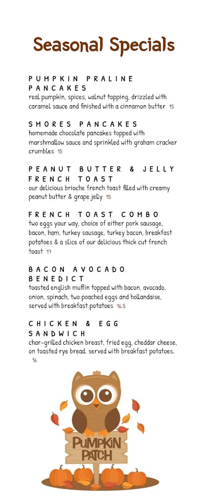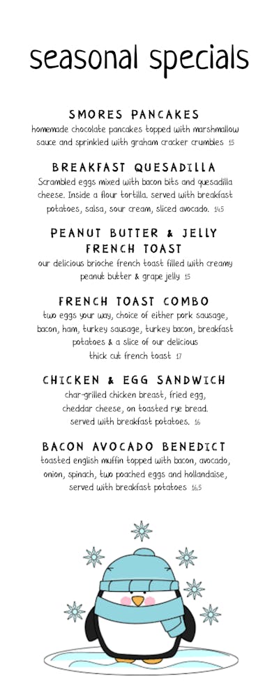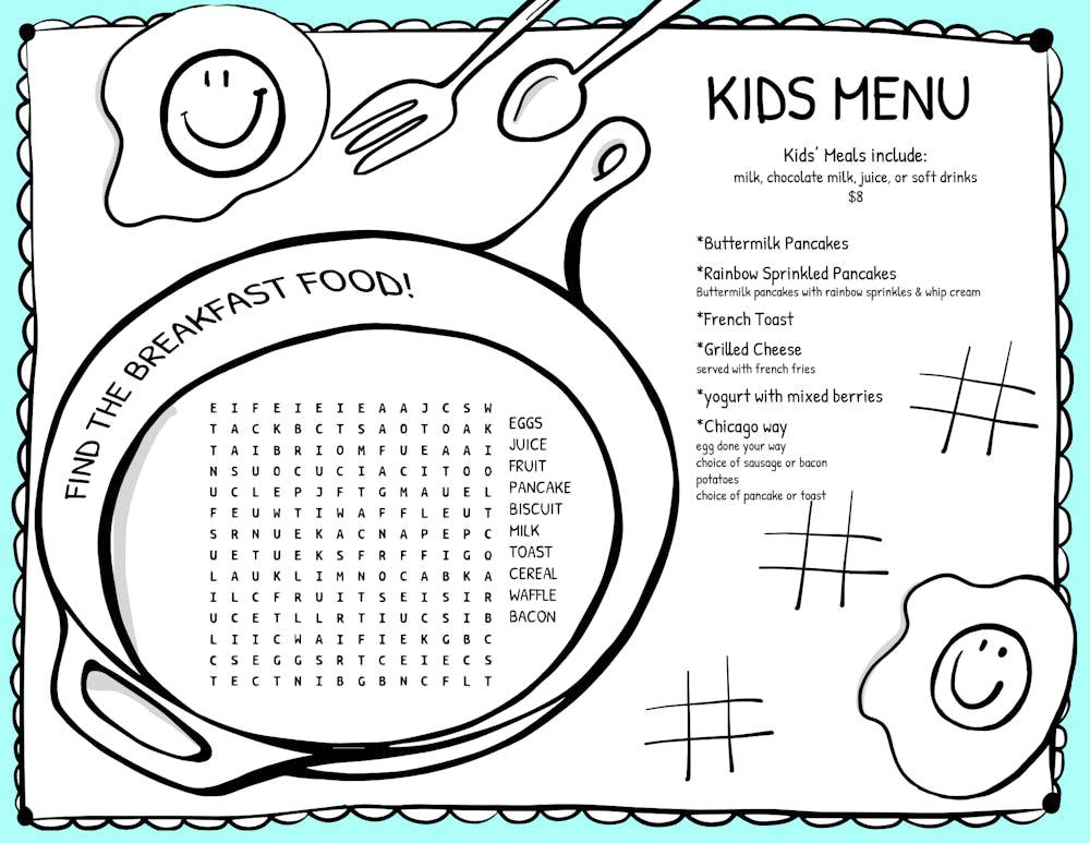$7.50 Choose from one of the following: Pancakes, French Toast, Chicago Way-(egg, protein, potatoes), Grilled Cheese, Yogurt with FruitThe Amazing Skillets
